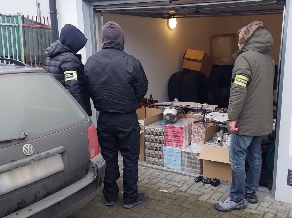 Funkcjonariusze z Placówki NOSG w Sławatyczach wspólnie z funkcjonariuszami Komendy Miejskiej Policji w Białej Podlaskiej, w trakcie wykonywanych czynności służbowych w Białej Podlaskiej, zatrzymali do kontroli samochód osobowy. Kierowca pojazdu (40-letni ob. RP) przewoził w bagażniku nielegalne papierosy z białoruską akcyzą. W trakcie dalszych działań mundurowi zatrzymali mężczyznę oraz przeszukali będący w jego dyspozycji garaż. Okazało się, że również i tutaj przechowywał on znaczne ilości papierosów pochodzących z przemytu. Do sprawy zabezpieczono łącznie 8 998 paczek papierosów z białoruską akcyzą o wartości prawie 160 tys. zł.