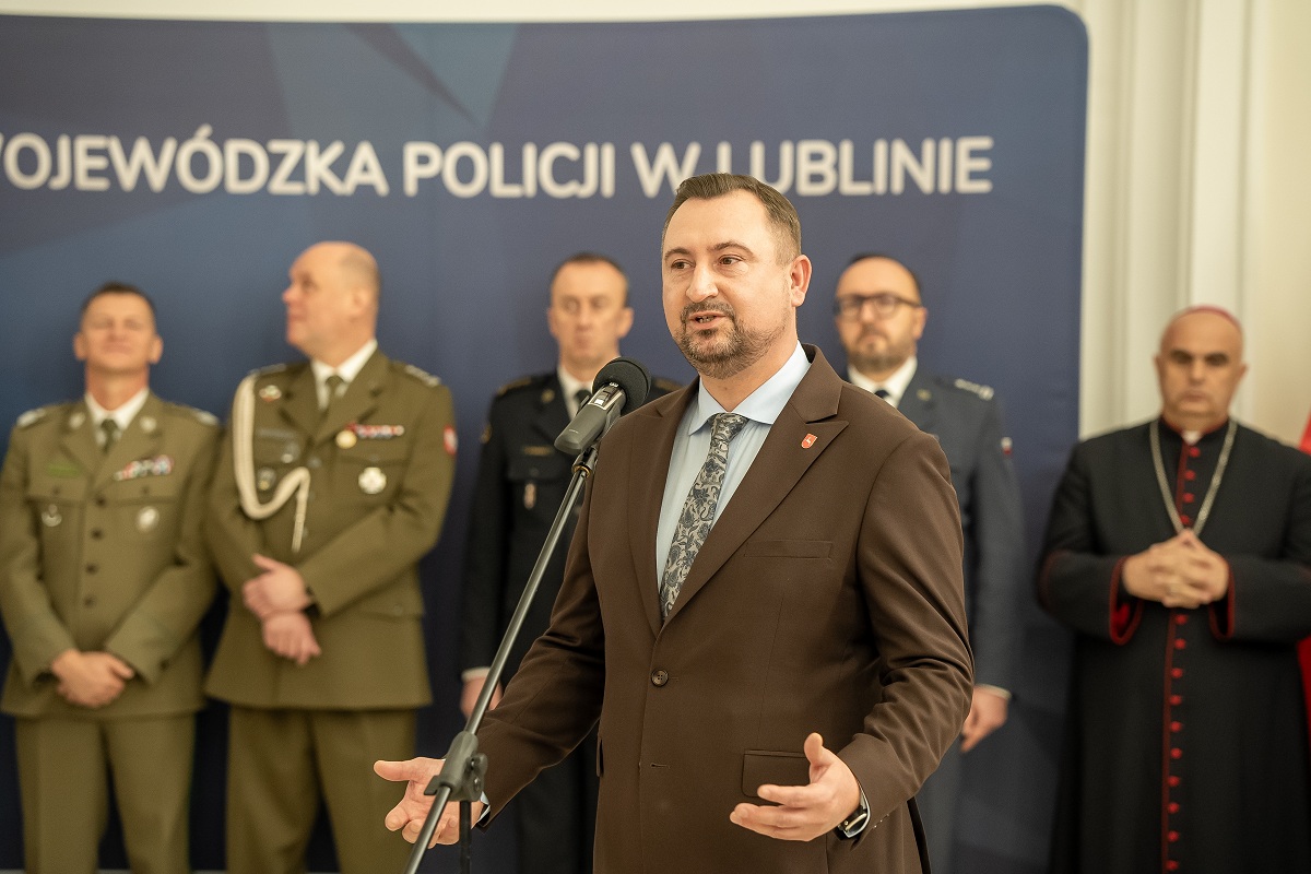Wszystkich uczestników spotkania przywitał Komednant Wojewódzki Policji w Lublinie - insp. Tomasz Gil, który jako gospodarz spotkania w swym wystąpieniu podkreślił, iż dzisiejsza obecność przedstawicieli służb jest wyrazem współpracy, współdziałania i jedności służb mundurowych Lubelszczyzny. Życzył wszystkim zgromadzonym oraz ich rodzinom przede wszystkim spokojnych świąt.