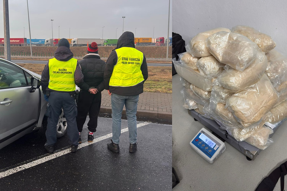 W trakcie kontroli szczegółowej pojazdu funkcjonariusze znaleźli zamontowaną skrytkę w przednim nadkolu pojazdu. W zabezpieczonej metalową klapą skrytce znajdowało się 40 zamkniętych woreczków foliowych zawierających krystaliczną substancję. Badanie testem narkotykowym wykazały, że jest to mefedron. Funkcjonariusze zabezpieczyli prawie 42 kg narkotyku o czarnorynkowej wartości ponad 2,5 mln zł.
