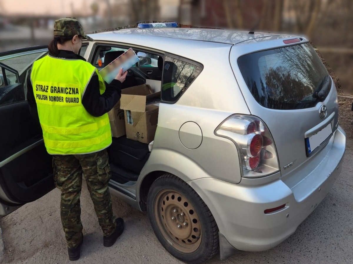 Ujawnienie nielegalnego towaru miało miejsce podczas kontroli drogowej w powiecie bialskim. Funkcjonariusze z Placówki SG w Sławatyczach zatrzymali samochód marki Toyota, którym podróżował 55–letni ob. Polski. W trakcie czynności kontrolnych funkcjonariusze ujawnili w przestrzeni bagażowej jego pojazdu, znaczne ilości papierosów bez polskich znaków akcyzy. W wyniku dalszych czynności służbowych, przeprowadzonych w miejscu zamieszkania mężczyzny, mundurowi odkryli kolejne nielegalne wyroby akcyzowe w postaci papierosów i alkoholu.