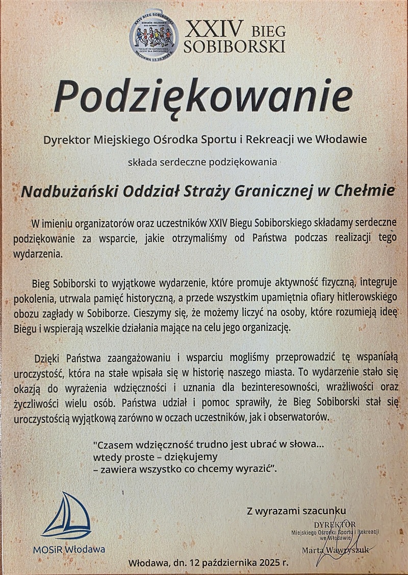Podziękowania Dyrektora MOSiR we Włodawie Podziękowanie za pomoc i wsparcie organizacji konkursu Podziękowania za udział w wydarzeniu charytatywnym Podziękowania za pomoc w organizacji wystawy Podziękowania z uczestnictwa w WOŚP